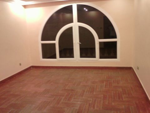 For rent in Fintas, a new 2-apartment unit, first occupant, third floor. It consists of 3 bedrooms, including a master bedroom and two other bedrooms served by a bathroom, a maid's room with a bathroom, a fully equipped kitchen, and an isolated living room. There is a roof, super deluxe finishing, air conditioning, satellite, exhaust fan, central water heater, shower box, shutter, easy exit, elevator, and 2 shaded side-by-side parking spaces. Rent is 450 dinars.