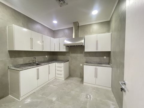 For rent in Fintas, a new 2-apartment unit, first occupancy. Each apartment consists of 3 bedrooms, including a master bedroom and two other bedrooms served by one bathroom, a maid's room with a bathroom, a fully equipped kitchen, and an isolated living room. High-quality finishing includes curtains, shower box, air conditioning, satellite, hood, central heater, elevator, and shaded parking for 2 cars side by side. There is a basement apartment with a private entrance, a ground floor apartment with a private entrance, a first floor apartment, a second floor apartment, and a third floor apartment with a roof. The rent per apartment is 450 dinars.
