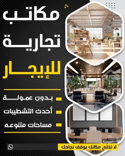 للإيجار: مكاتب تجارية في العاصمة، أقوى المجمعات وأحدث التشطيبات وأرقى المواقع، بدون عمولة. مساحات مختلفة وأسعار متنوعة. مواقع سهلة الوصول إليها، آمنة على مدار الساعة.
