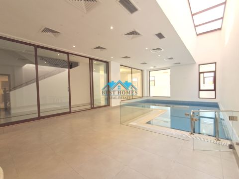 فيلا بخمس غرف نوم رئيسية وحوض سباحة داخلي في منطقة الفنطاس. تحتوي على ثلاث صالات معيشة، وحوض سباحة داخلي، وخمس غرف نوم رئيسية، ومطبخين، وغرفتين للخادمات، وغرفة غسيل، وغرفة للسائق، ومواقف سيارات في الطابق السفلي. الإيجار 2300 دينار كويتي. اتصل أو واتساب للمشاهدة.
