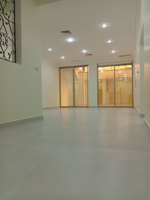 For rent: Jabriya apartment, 2 large living rooms, 5 bedrooms, 2 master bedrooms with large spaces, large kitchen, 5 bathrooms, marble living room, plus laundry room and dryer, or it can be used as storage. First-class flooring, courtyard, 2 covered parking spots, central air conditioning, central satellite. One point per room. Rent: 900 dinars including electricity and water.