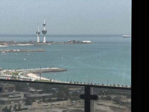 شقة جديدة تماما غرفتي نوم باطلالة على البحر مع شرفة في قلب مدينة الكويت - صالة معيشة عصرية وأنيقة مع شرفة، مطبخ مفتوح مجهز، حمام ضيوف، غرفتي نوم رئيسيتين، خزائن مدمجة، غرفة خادمة مع حمام، مسبح، صالة ألعاب رياضية، موقف سيارات تحت الأرض، الإيجار 900 دينار كويتي