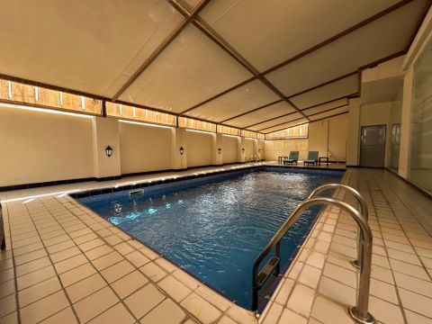 A sea-view apartment, semi-furnished with one month free for rent in the East. Total area 82 sqm, super deluxe finishing, easy access, sea view. Consists of 2 master bedrooms, living room, fully equipped kitchen, 3 bathrooms, maid's room with its own bathroom, reception lobby, 24-hour camera system, cleaning service twice a week, internet service, swimming pool, gym, parking spaces, includes electricity, water, and maintenance. Rent 650 KD without services (675 KD inclusive).