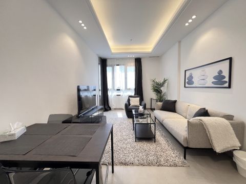 For rent, a second-floor apartment in Kaifan with a balcony, new finishing, first occupant, two entrances to the apartment, master bedroom, two rooms with a bathroom between them, living room, guest bathroom, kitchen, maid's room with bathroom, elevator, central air conditioning, two car parking spaces, basement. Rent is 750 KD final with one month security deposit.
