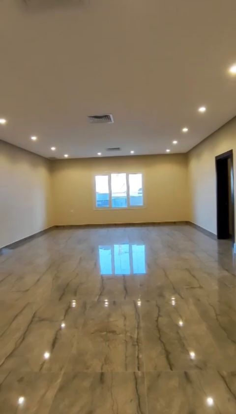 For rent in Al Qadisiyah, first floor with balcony, excellent finishing. The floor consists of 4 rooms, including two master bedrooms and two rooms served by a bathroom, a large living room with a balcony, laundry area, guest bathroom, large equipped kitchen, domestic worker's room with bathroom, laundry room, two parking spaces in the basement, and a driver's room for all tenants. Rent: 850 Kuwaiti Dinars. For inquiries, contact Wuhaydir.