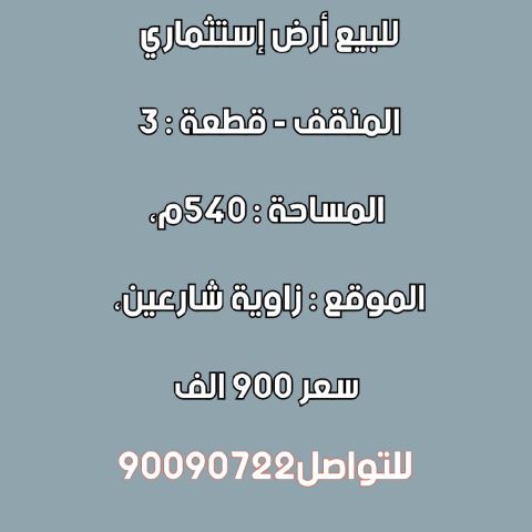 For sale A vacant land in Al - Surra, area 1682 SQM, on the fourth and main road, 3 facades, price 2750000 Kuwaiti Dinars. Al - Farhan United real estate Company for contact and inquiries