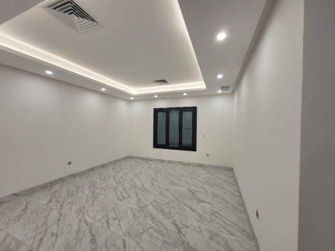 Brand new 4-bedroom floor with balcony for rent in Al-Masayel. Rent is KD550 per month. For American, European, or Korean expats only. Light, private, quality, and convenience. The larger-than-average property boasts a spacious living room with windows. 4 bathrooms, kitchen, living room, shaded parking. This is a great catch; please get in touch for an inspection. Please call Anwar.