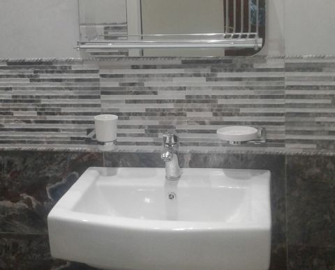 For rent: Two apartments in the northwest area. One of them has a sea and street view on the second floor with an elevator. Each apartment has 3 bedrooms, 3 bathrooms (one of them is a master bedroom), a maid's room with its own bathroom, a large living room, and a fully equipped kitchen. Central air conditioning is included. The rent is 420 dinars. Suitable for singles, couples, or two children; widows or divorced women are acceptable, with no more than two persons. Both apartments have the same specifications.