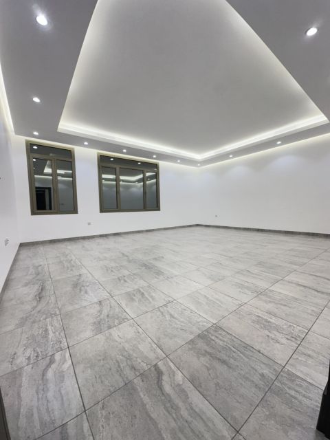 للإيجار: دور أرضي مدخل خاص، تشطيب مودرن، 5 غرف نوم ماستر، صالة كبيرة، حمام ضيوف، مطبخ مجهز بالكامل، غرفة خادمة بحمام، غرفة غسيل، غرفة سائق، 3 مواقف سيارات. الإيجار: 1100 دينار كويتي.
