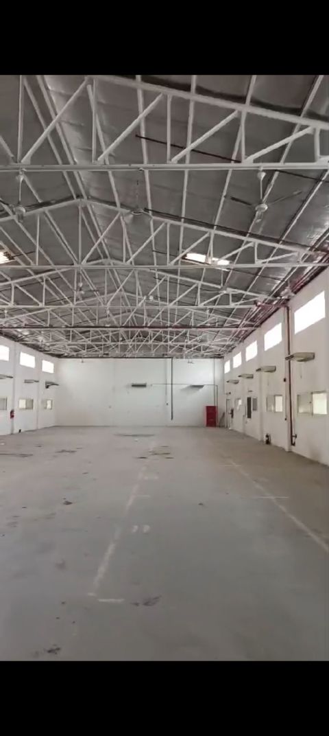 For rent in Al-Rai: An area inside a 250 sqm plot with a licensed 125 sqm shed on a luxurious plot. Features include central air conditioning, high ceilings, a fire license, automatic number, ventilation, easy loading and unloading access, and suitability for various industrial, commercial, and craft activities such as blacksmithing, carpentry, aluminum works, advertising, printing, plastic factories, Kinlex, furniture, electrical appliances, and similar activities. The required rent is 2850 dinars.