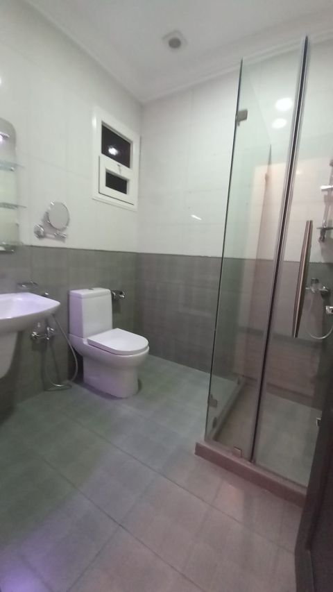 For rent: An apartment in Al-Salam, in the basement, with a private entrance and a large courtyard. Super deluxe finishing, a very prime location close to the main cooperative and services. Large spaces include 3 bedrooms (a master bedroom and two bedrooms with a bathroom in between), a large living room with a guest bathroom, a fully equipped kitchen, a maid's room, 4 bathrooms, central air conditioning, a central satellite system, a central boiler, shutters, and two shaded car parking spaces. Rent is 500 dinars inclusive. For contact: Abu Sultan.