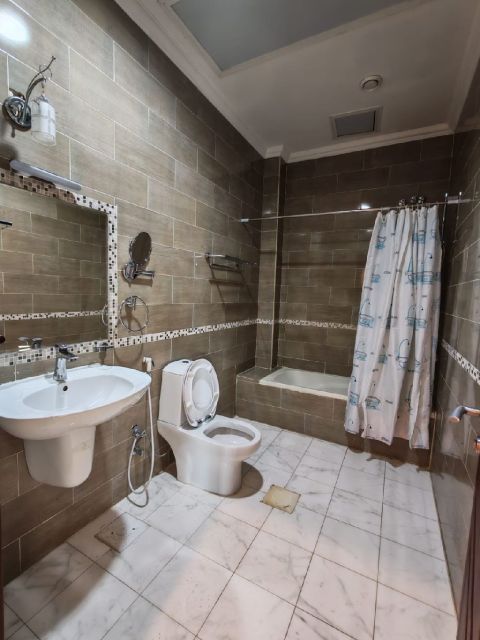 For rent in Al-Salam, a ground floor unit with a private entrance. It has 4 master bedrooms with a dressing room, a large living room, a guest bathroom, a fully equipped kitchen, a laundry room, a maid's room with a bathroom, and a driver's room with a bathroom. The finishing is super deluxe and elegant, with curtains, shower box, and central air conditioning. The location is prime, opposite services, with 3 shaded parking spaces. The rent is 1150. For contact, reach out to the Dana Group Real Estate Services office.