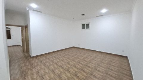 Ground floor apartment in Al-Salam area, private entrance, large spaces, modern finishing, with a driver's room, 4 bedrooms all master, large living room, guest bathroom, equipped kitchen, laundry room and storage, maid's room with bathroom, shutters, shower box, central AC, 3 parking spaces, shaded parking. Easy access and exit, opposite services. Rent: 1100 KD. For contact.