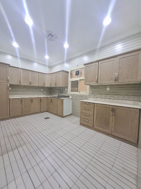 The price has been reduced. An apartment on the ground floor with a balcony in the Al-Salam area, featuring 5 bedrooms including two master bedrooms, a living room, guest washrooms, a fully equipped kitchen, a maid's room with a bathroom, a laundry room, and two parking spaces. Rent is 750 Kuwaiti Dinars. For contact.