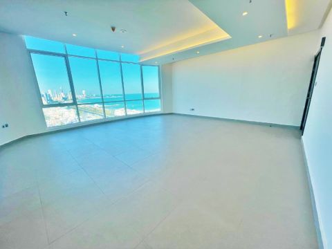 A semi furnished apartment (first occupant) for rent in Salmiya with super deluxe finishing, consisting of one bedroom, one bathroom, a hall, and an equipped kitchen, with a wardrobe in the room, a balcony, a swimming pool, a gym, internet, security, cameras, a reception lobby, weekly cleaning service, maintenance service, available parking spaces, inclusive of water, electricity, and maintenance