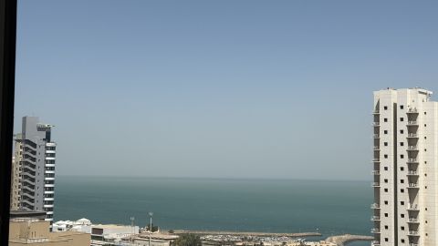 3 bedroom semi-furnished luxury apartment in Shaab Park, Salmiya. Features include a balcony with city view, 3 master bedrooms with built-in wardrobes, 1 living hall, closed-type kitchen, shaded car parking, swimming pool, fitness hall, security, internet, phone service, newspaper delivery, and maintenance service. A grocery store is nearby. Rent is KD750. Realtor fee applicable.