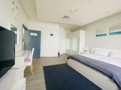 A furnished apartment for rent in East Piece 3, a prime location with a sea view, super deluxe finishing, consisting of a hall, room, kitchen, bathroom, surveillance cameras, security, swimming pool, gym, lobby, billiards, tennis table, internet, car parking, cleaning service, including water, electricity, and maintenance. Rent starts from 800 KD per month, security deposit + company commission.