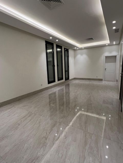 For rent in Al Al Sadiq, first floor with elevator, balconies, super deluxe finishing, 4 bedrooms including a master bedroom, 3 bathrooms, large living room with guest bathroom and laundry area, equipped kitchen, maid's room with bathroom, laundry room, central air conditioning, car parking spaces, rental price KD1000