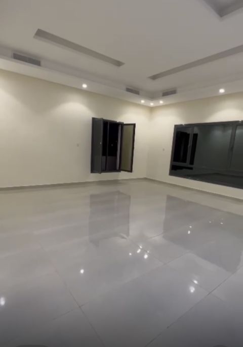 For rent: A new ground floor apartment in Al-Sadeeq with two entrances, VIP finishing. It consists of 5 bedrooms, including 3 master bedrooms with closets, a large living room, a courtyard, a fully equipped kitchen, maid's room, laundry room, 6 bathrooms, and covered parking. Rent: 900 dinars. For contact.