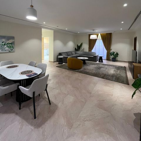 شقة مفروشة للإيجار في السرة، موقع مميز جداً وقريب من جميع الخدمات، تشطيب سوبر ديلوكس، مكونة من 4 غرف نوم منها 2 ماستر، صالة، مطبخ، مجموع الحمامات 5 منها حمام ضيوف، غرفة عاملة مع حمامها، بلكونة، متوفر كاميرات مراقبة، مسبح، جيم، موقف سيارة، شامل ماء وكهرباء وصيانة تكييف. الإيجار 1200 دينار كويتي، تأمين إيجار شهر واحد بالإضافة إلى عمولة الشركة.