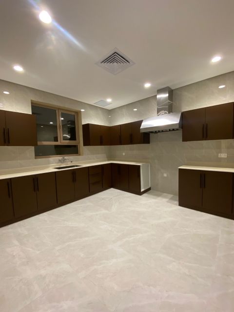For rent, a semi-new apartment with VIP finishing in Al Zahra, with a private basement entrance. It consists of 3 master bedrooms, a living room, a fully equipped kitchen, a maid's room, and 4 bathrooms. There is an elevator that reaches the apartment and two shaded parking spots. The rent is 550 dinars. For contact.