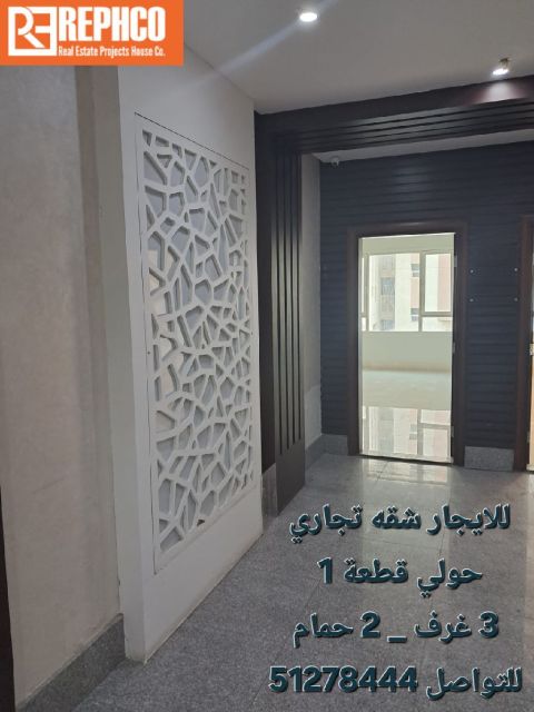 للإيجار شقة تجارية - حولي قطعة 1 - 3 غرف صالة مطبخ 2 حمام - يوجد مسبح - جيم رياضي بدون عمولة للتواصل