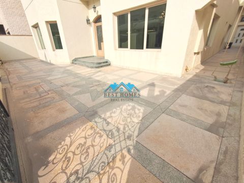A house for rent consisting of three floors, Plot 13, Bayan. The ground floor has a main hall, a secondary hall, a diwaniya, and a main kitchen. The first floor has 4 rooms, two of which are master bedrooms, a hall, and 3 bathrooms, two of which are master bathrooms, and a preparation kitchen. The second floor has 3 rooms, one of which is a main master bedroom, a preparation kitchen, a maid's room with a built-in wardrobe, and a large distributor inside them, and a laundry room. The roof has a room and a bathroom for the driver, a storage room, and a boiler room. Note: There is an elevator, and pets are allowed except for dogs.
