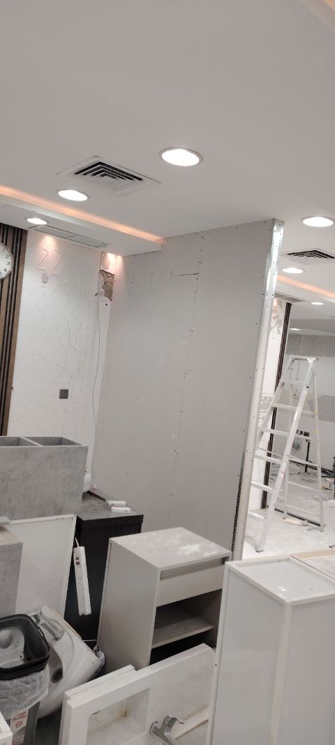 Italian paints, regular paints, antiquing paints, matte paints, Jatroff surface paints, floor paints, Sajmah paints, marble effect paints, installation of cooled gypsum, installation of marble alternative, installation of wood alternative, installation of wallpapers, suitable prices, demolition, general restoration, expansion, installation of cornices.