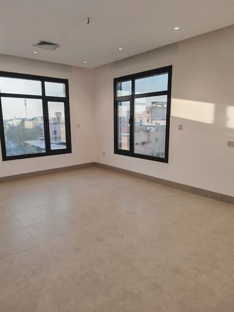 For rent: A new ground-floor apartment, VvVIP, in Al-Omariya, brand new and never occupied before. Super deluxe, very elegant, and modern finishing. It has a private entrance. It consists of a hall with a guest bathroom and sink, a living room, 4 bedrooms including 2 master bedrooms and two bedrooms with a shared bathroom, a maid's room with a bathroom, a laundry room, and a fully equipped kitchen. Includes air conditioning, water heaters, and a central filter. Rent is 750 Kuwaiti Dinars. Brokers are prohibited.
