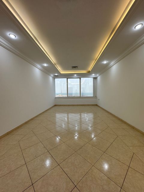 Apartment for rent in Rumaithiya, Block 4, first floor, 2 bedrooms, living room, 2 bathrooms, kitchen, air conditioning, cabinets, includes water and electricity, all nationalities, families only, girls'families, divorced families, without husbands, sound parking, canopies, private entrance, rent 250