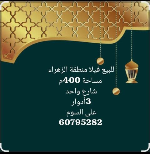 For sale, a villa in Salwa, Plot 5, area 500 square meters, located on a single street, consisting of two and a half floors, clean, fully renovated inside, easy access and exit, vacant, immediate delivery, without an elevator, central air conditioning, price 420,000 dinars, license number 3192 / 2015.