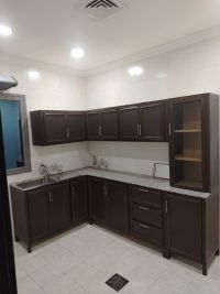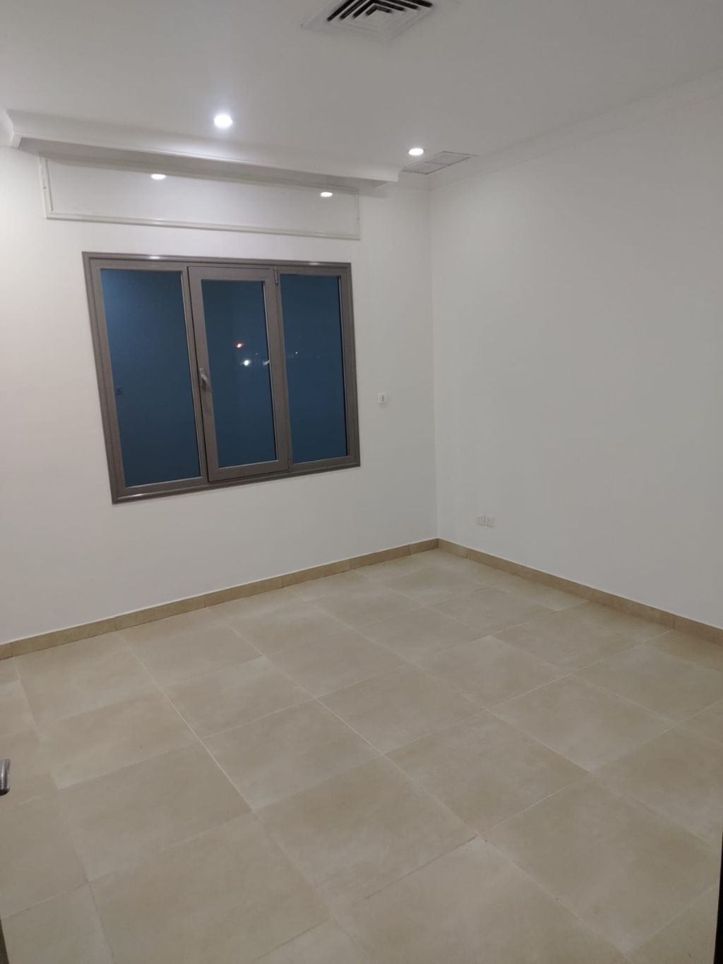 For rent in Al-Omariya, Plot 5, for families only. A second-floor apartment consisting of a master bedroom, two other bedrooms with a shared bathroom, a living room, a fully equipped kitchen, and two parking spaces. The rent is 400 Kuwaiti Dinars (KD) final. Video viewing is available. Intermediaries are strictly prohibited.