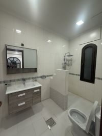 For rent: a luxurious apartment in Ashbiliya, Area 2, with super deluxe finishing, directly on the main street, very close to the main cooperative. The apartment consists of three bedrooms including a master bedroom, three bathrooms, a large separate living room isolated from the rooms, a fully equipped kitchen, and a maid's room with a bathroom. It includes air conditioning, central heating, and central filters. Note: the apartment is luxurious. A small family with two children is required. The final required rent is 420 dinars. For contact: Abu Adel.