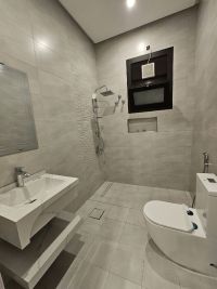 A great opportunity to rent two twin apartments in Al-Mutlaa, the pinnacle of luxury + high-end finishing, first occupant + on the second floor with elevator + full decorations, lighting, and electric shutters + everything is centralized and guaranteed + two car parking spots per apartment + a very prime location opposite the cooperative society and mosque + owner's residence + both apartments have the same specifications, each apartment consists of (an independent living room + 3 bedrooms, including 1 master bedroom + a bathroom between the rooms + a maid's room with its own bathroom + kitchen + total of 3 bathrooms). Rent is 250 Kuwaiti dinars (per apartment).