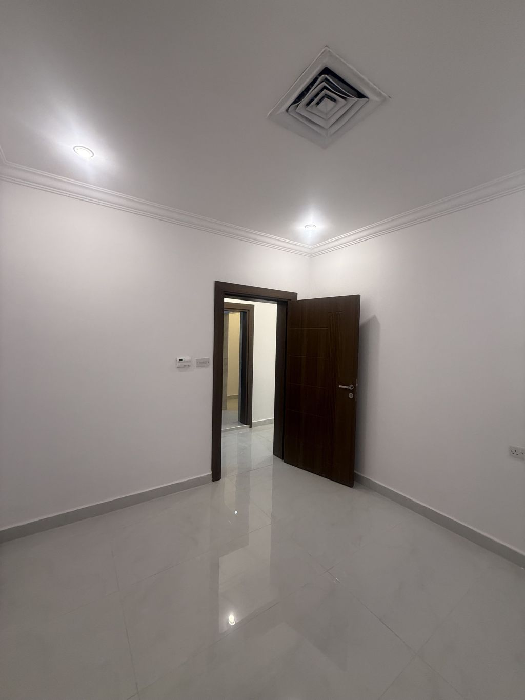 For rent: a new apartment in Seville, Block 4, with new finishing, super deluxe. The apartment consists of three bedrooms, including a master bedroom, two bathrooms, a living room, a large equipped kitchen, and a maid's room. It includes air conditioning and central heating. Note: the apartment is on its own, there is no gym apartment. A small family is required. The required rent is 370 dinars. For contact: Abu Adel.