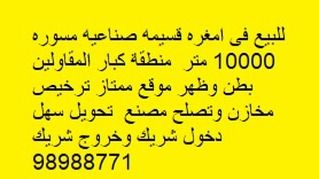 For sale, an empty land in Um Ghara, Hawalli, 10,000 square meters, with a front and back, licensed for a warehouse, suitable for a conversion factory, easy entry and exit for a partner.