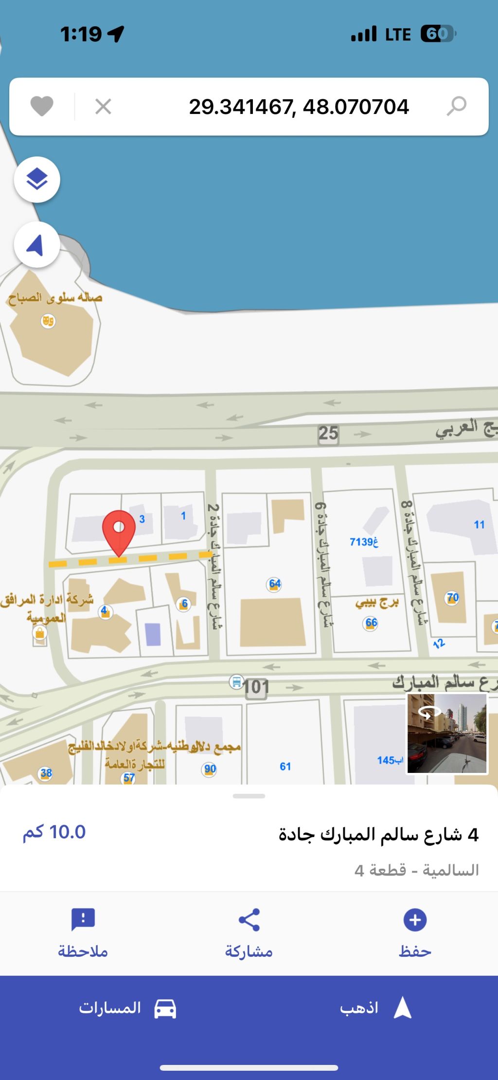 للبيع أرض في السالمية المساحة 6400م تجاري استثماري على شارع سالم المبارك وشارع الخليج على البحر مباشرة موقع مميز