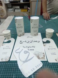 We have available pens, notebooks, cards, a whiteboard, school stamps, cups, Kleenex boxes, a bridal notebook, stickers, and color, black and white printing