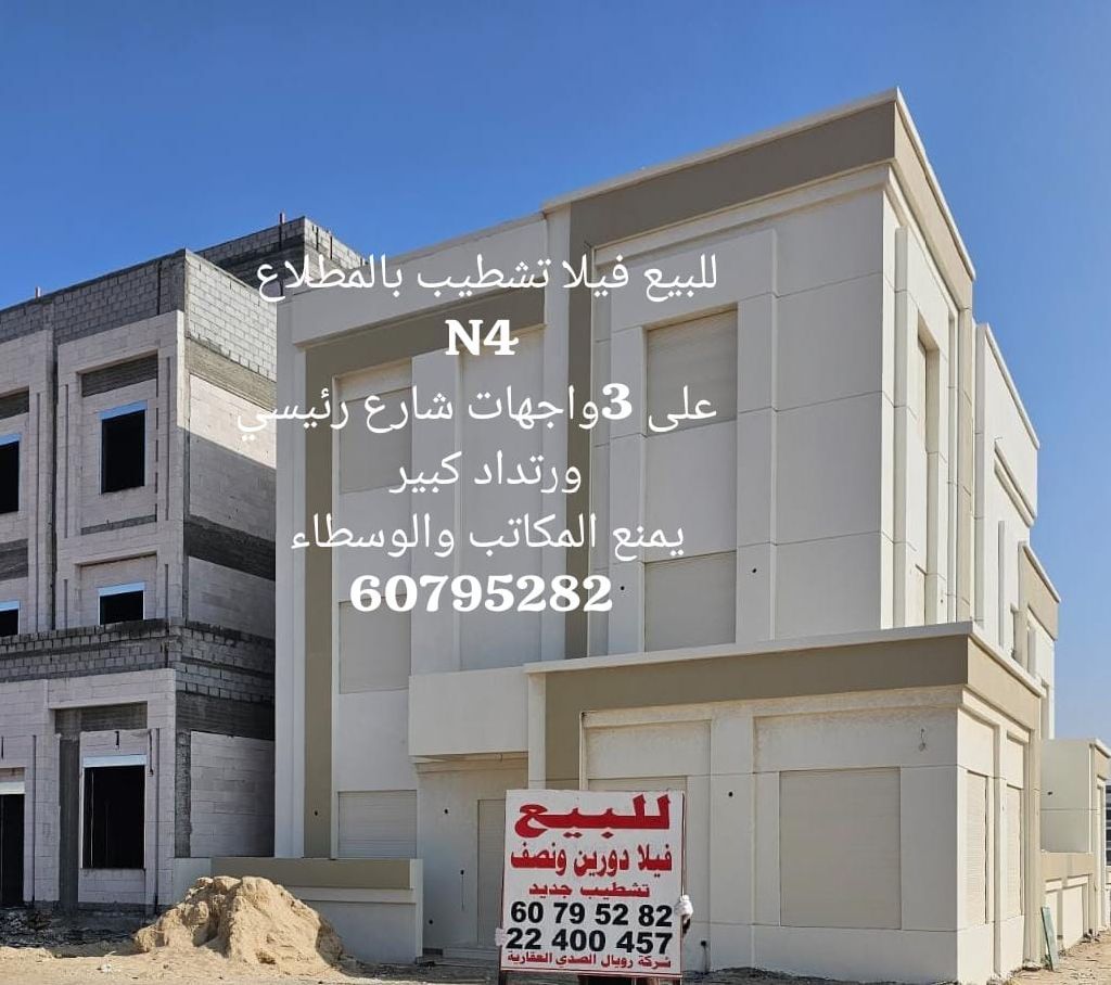 For sale: A villa with finishing in the Al-Mutla'a area - on 3 sides (front, back, and transformer street) with a large setback - two and a half floors - price by negotiation - offices and brokers are prohibited.