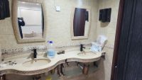 For rent: A government house in Saad Al-Abdullah, two and a quarter floors, central air conditioning system. The ground floor consists of a hall, 2 diwaniyas, a master bedroom, a kitchen, and a driver's room. The first floor consists of 5 rooms, 3 of which are master bedrooms, two rooms share a bathroom, a rooftop hall, a maid's room, a large room, and a laundry room. Parking for 7 cars. Electricity and water included. Rent: 1150 KD. NQ.