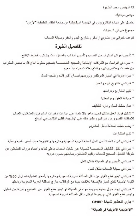 مهندس مدني ابحث عن فرصة مهنية في مجال التنفيذ / الاشراف / إدارة المشاريع. لدي خبرة تمتد الى 16 سنة في الانشاءات الحكوميه والمباني السكنيه، البنية التحتية، الطرق التابعة لوزارة النقل والبلديات، خطوط الأنابيب التابعه لارامكو وأتمتع بخبرة عملية في متابعة الأعمال الميدانية، وضبط الجودة، واعداد التقارير الفنية والبرامج الزمنيه، والتنسيق بين فرق العمل والمقاولين. أتقن استخدام البرامج الهندسية