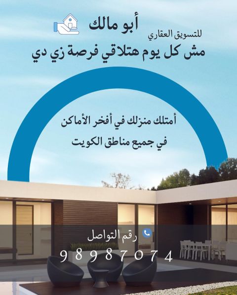 For rent: A new apartment in Khaitan, second floor, with high-quality finishing. It includes a master bedroom, two bedrooms with a shared bathroom, a living room, a guest bathroom, a kitchen, a maid's room with a bathroom, an elevator, shutters, a shower box, central air conditioning, two shaded parking spaces side by side. Rent is 450 dinars. Required: Kuwaiti tenants, married couples, or a child living in the house. Owner's residence. Al Manazil Real Estate Group.