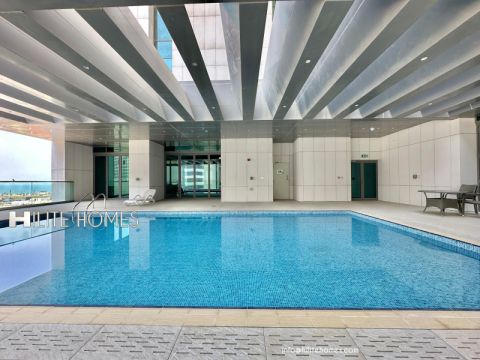 شقة حديثة بغرفتي نوم في السالمية مع شرفة، مسبح، صالة ألعاب رياضية، ومساحات معيشة أنيقة. تشمل غرفة معيشة، غرفتي نوم، حمامين (غرفة نوم رئيسية واحدة) مطبخ، مسبح وصالة ألعاب رياضية مشتركة، منطقة شواء، مواقف سيارات تحت الأرض، والإيجار من 650 الى 725 دينار كويتي