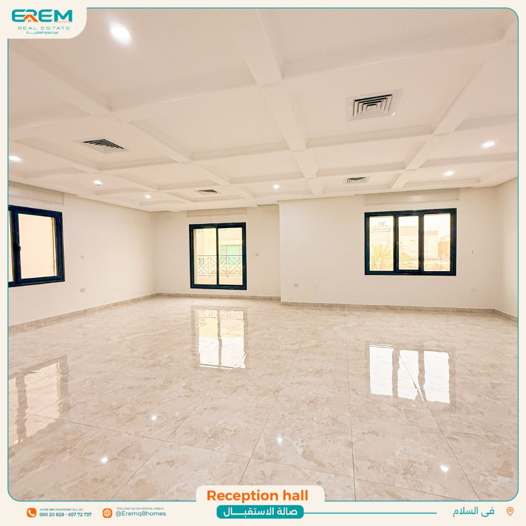 دور للإيجار في "السلام" أول مع بلكونات تشطيب سوبر ديلوكس يتكون من صالة مع حمام ضيوف - 4 غرف منهم 2 ماستر - مطبخ - غرفة غسيل - غرفة مربية مع حمام - مواقف مظللة للإيجار 1000دك للاستفسار والمعاينة الاتصال