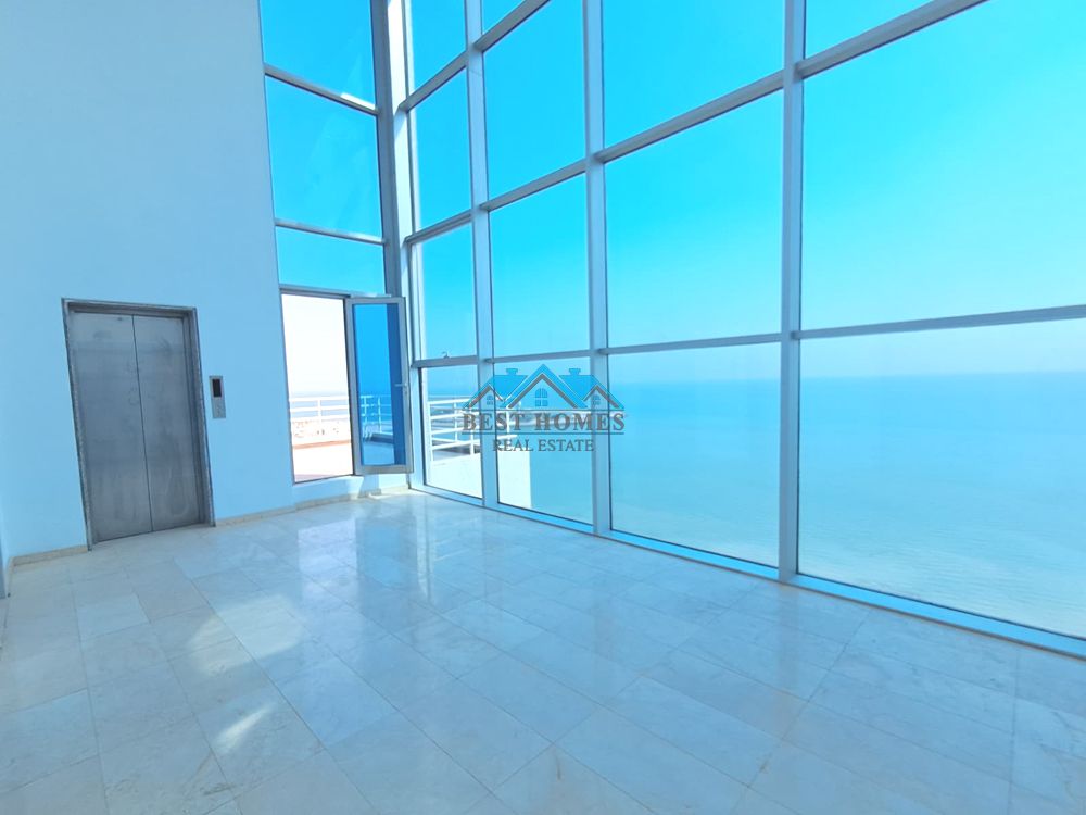 شقة دوبلكس بغرفتي نوم مع اطلالة على البحر في الشعيبة البحرية. منطقة معيشة مع شرفة كبيرة واطلالة على البحر، غرفتي نوم، مطبخ مع اجهزة، بدون غرفة خادمة، مسبح، صالة رياضية. الإيجار 900 دينار كويتي / شهر. اتصل أو واتساب للمعاينة