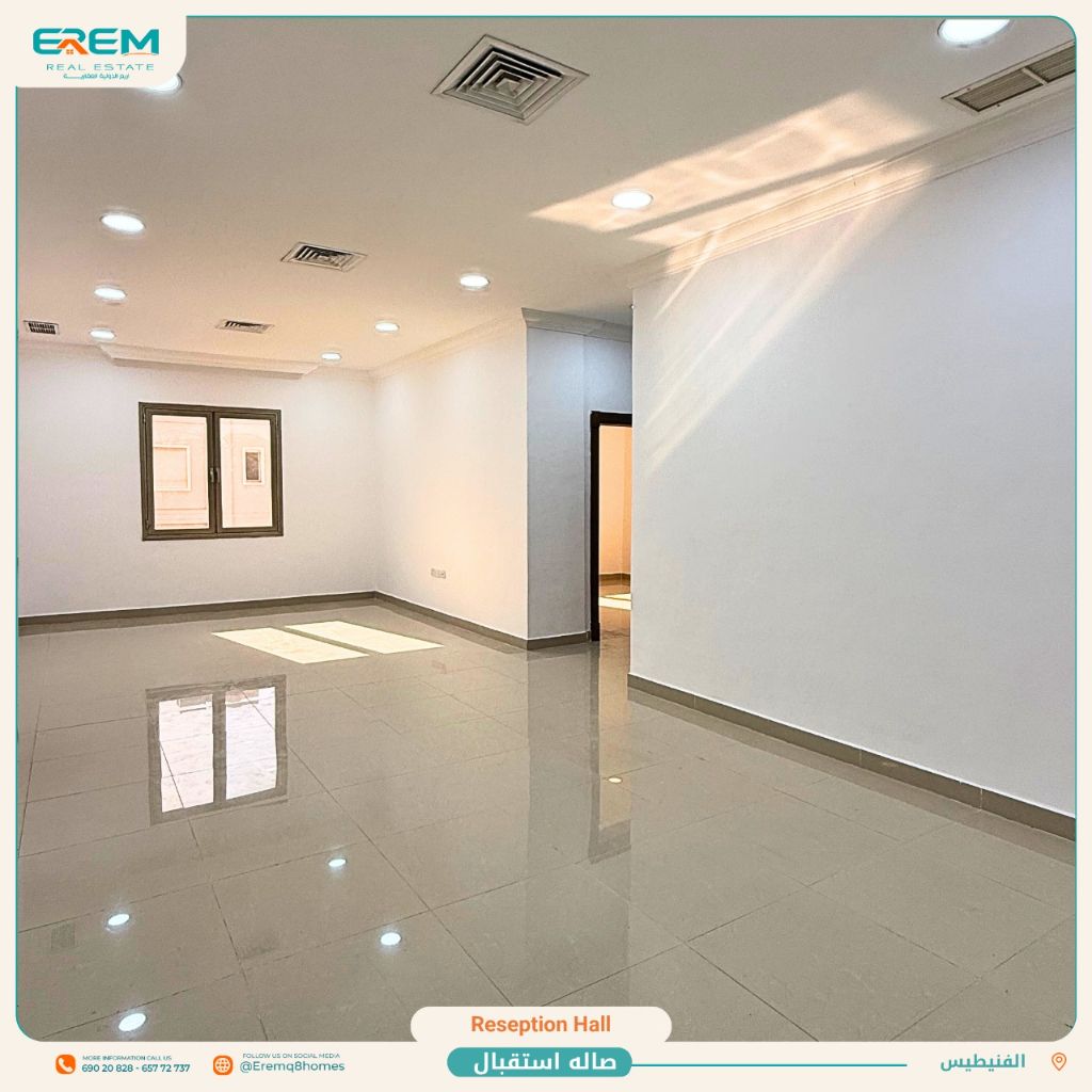 للإيجار في فنيطيس، شقة تشطيب سوبر ديلوكس تتكون من صالة، 3 غرف منها ماستر، مطبخ، ومواقف مظللة. الإيجار 430