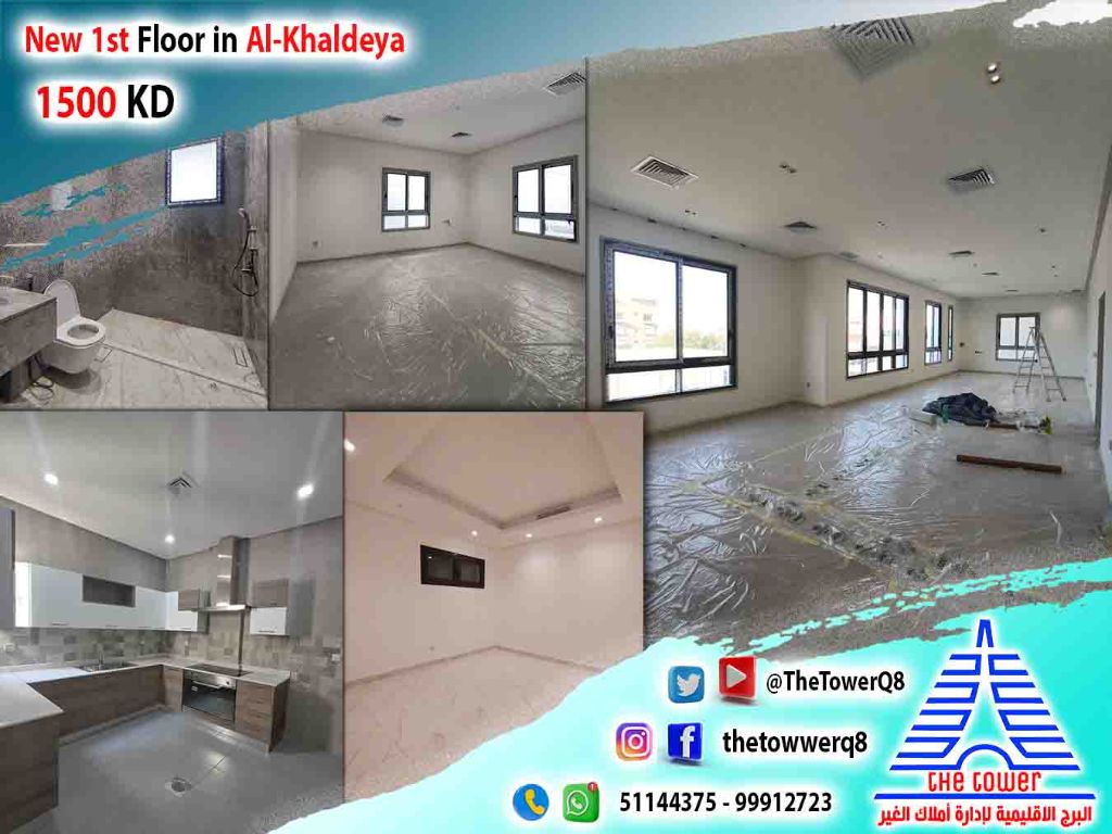 للإيجار في الخالدية، دور أول من فيلا زاوية - موقع مميز - قريب من الخدمات - مدخل ومخرج سهل - مساحات كبيرة - تشطيب جديد راقي - أول ساكن - 4 غرف نوم ماستر - صالة كبيرة مع حمام ضيوف ومغاسل - غرفة مربية مع حمام - مطبخ كبير مجهز - مخزن - مواقف مظللة. الإيجار 1500 دينار كويتي. للاستفسار.