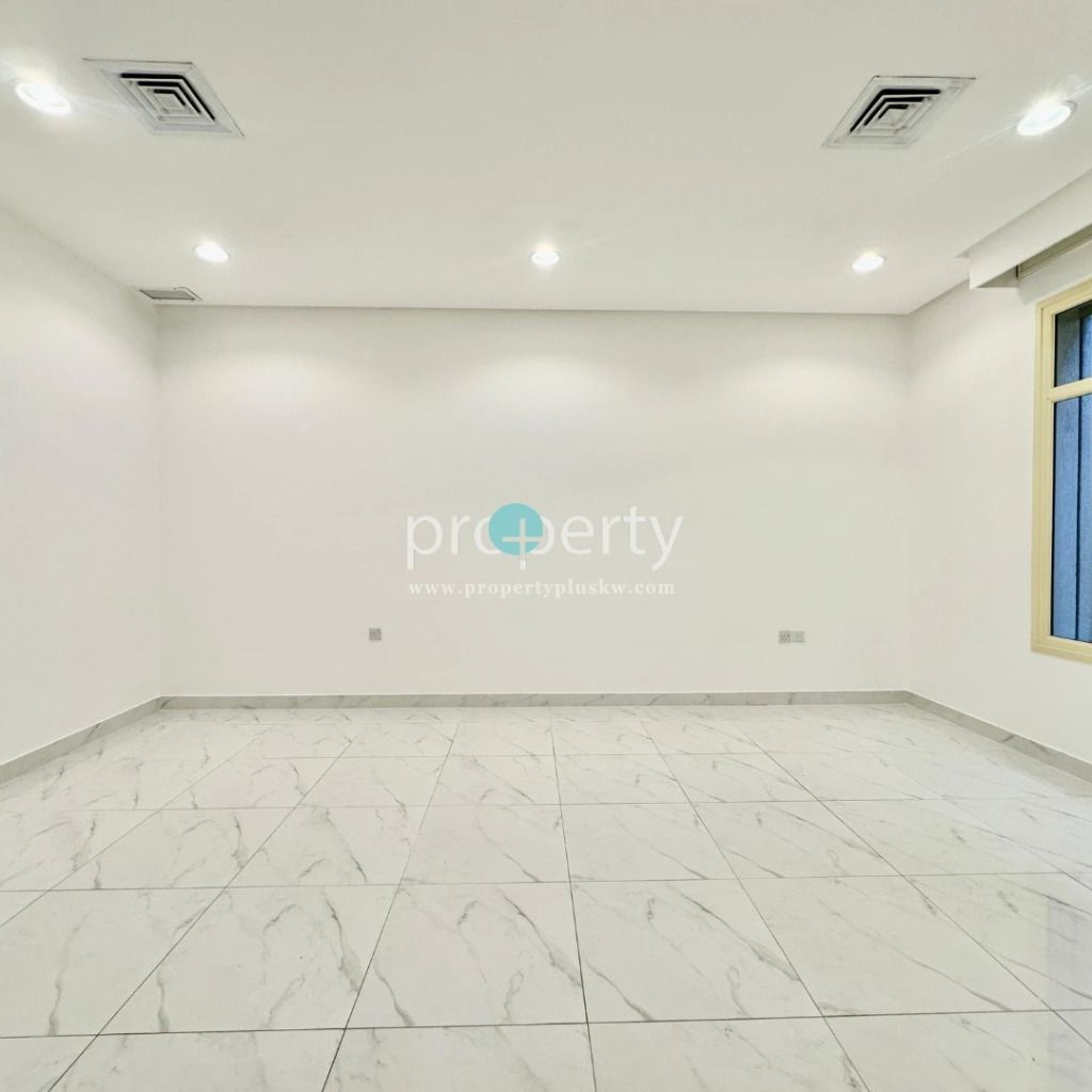 غرفة معيشة فسيحة، مرحاض للضيوف، أربع غرف نوم مع غرفتي نوم رئيسيتين، مطبخ مغلق، غرفة خادمة مع حمام، موقف سيارات مظلل، الإيجار 850 دينار كويتي