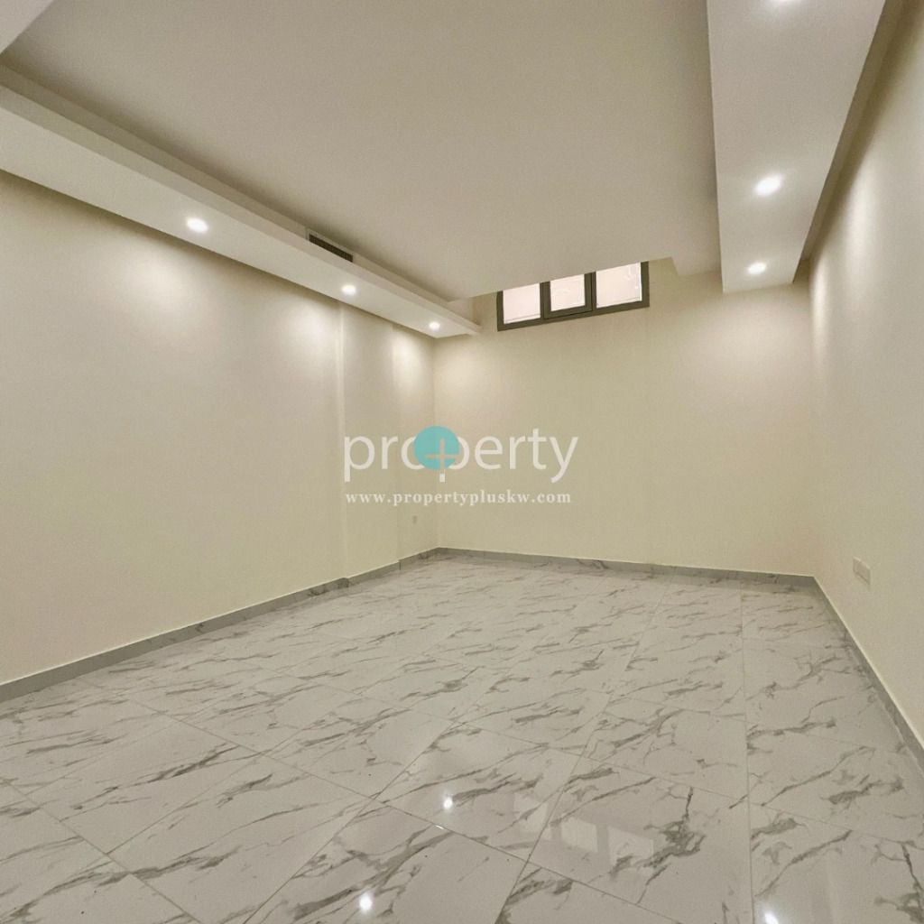 غرفة معيشة، ثلاث غرف نوم، غرفتي نوم بحمام مشترك، مطبخ مغلق، دورة مياه للضيوف، غرفة عامل منزلي بحمام، موقف سيارات. الإيجار 550 دينار كويتي