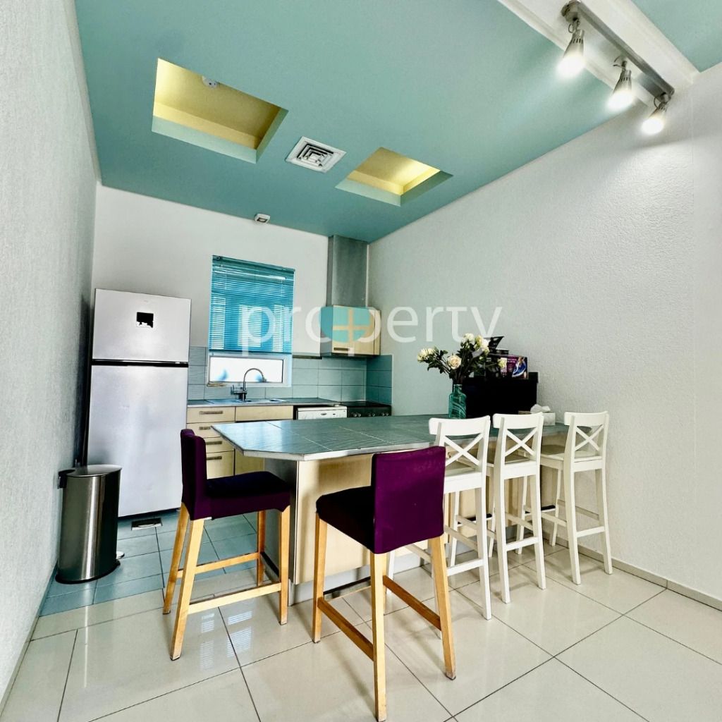 غرفة معيشة مع تراس، غرفتي نوم مع حمام مشترك، مطبخ مفتوح مجهز، مسبح مشترك وصالة رياضية، موقف سيارات مظلل، إيجار 500 دينار كويتي.